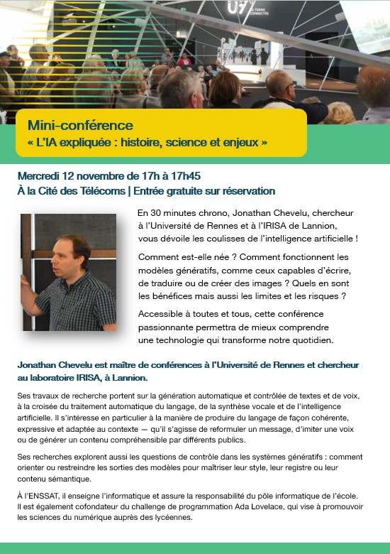 Mercredi 8 avril 2026, 14h à l’Enssat (amphithéâtre 138 C), Lannion
